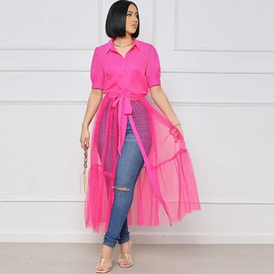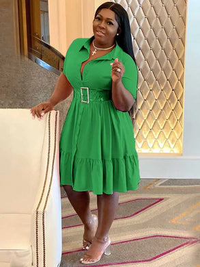 Vestido Camisa de Botão Liso com Babados e Manga Curta em A-Line, Disponível em 2 Cores Diferentes